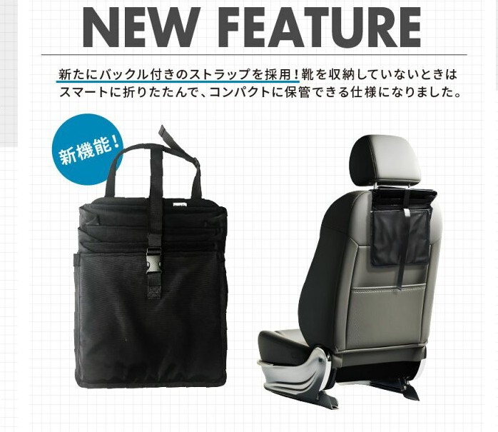 シートの背中に取り付けるタイプも自作の分も、どちらも良さそうなので、自分にあった収納方法を試してみようと思います。(その前に履く靴を減らさなきゃ…)