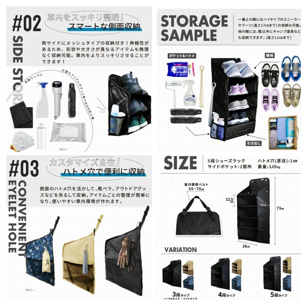 【楽天市場】シューズラック NEW 5段 靴入れ 車中泊 カーキャンプ 吊り下げ式 ハイエース キャンピングカー バンコン キャブコン 車用 靴 収納 小物入れ 折り畳み 車内 土禁 収納 靴置き 靴箱:RankupSports